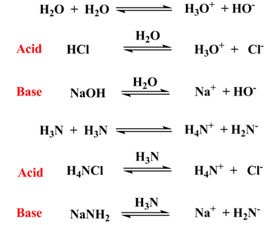 This definition also failed to define inherent acid-base character of a substance. Isotope labeling experiments showed that there was no dissociation and association of substance and solvent, hence, autoionization of solvents was questioned.