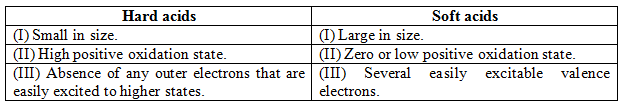 The features distinguish Hard and Soft acids: