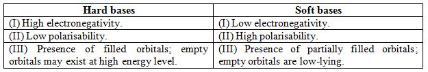 In 1963, R. G. Pearson proposed that hard acids prefer to combine with hard bases and soft acids prefer to combine with soft bases. This is known as HSAB concept or theory.