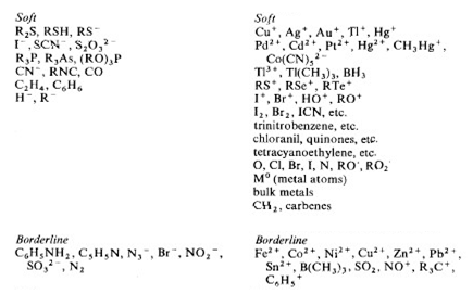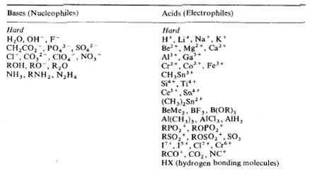 Strength of Lewis acids and bases [Hard (H) and Soft (S) Acid (A) Base (B) Concept = HSAB Concept), 1963]: