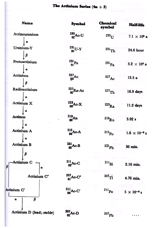 (IV) The Actinium Series: This series begins with