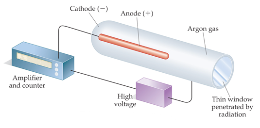 Radioactivity of a radioactive element can be measured by using a device like Geiger counter. In this machine an ionizing radiation creates ions, which conduct a current that is detected by the instrument.