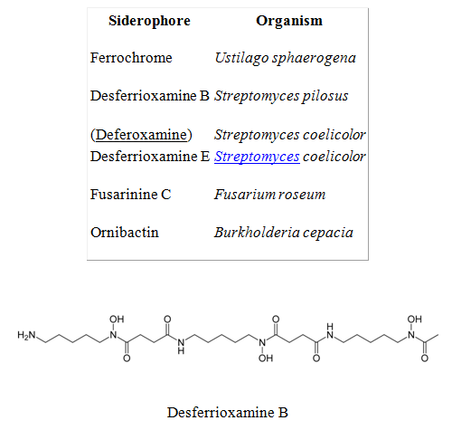 - Hydroxamate siderophores: