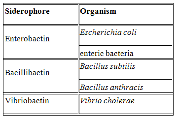 Siderophores means iron carriers. They are small polydentate ligands that have high binding affinity towards iron. They found in high content in bacteria, fungi, and also grasses.