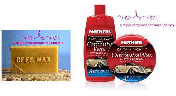 Waxes are also common in living organisms (Figure 2). For example, wax is found on the surfaces of some leaves, where it serves as protectant against parasites and minimizes the evaporation of water. Similarly, the feathers of birds are coated with wax to make them water repellent.