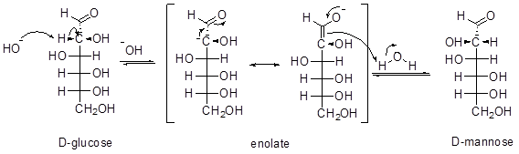 In the presence of base, D-glucose may be converted into D-mannose via the removal of hydrogen at C-2 carbon followed by protonation of the enolate (Scheme 1).
