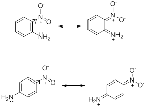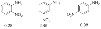 - Electron withdrawing and electron donating mesomeric effects also have influence on the strengths of acids and bases. In the series of o- , m-, p- nitroanilines it is observed that the ortho and para isomers have extremely high acidity as compared to the meta isomer. In fact the o -nitroaniline is a stronger acid than p -nitroaniline. This is explained in terms of electron withdrawing mesomeric effect which is operational only in the ortho and para isomers but not in the meta isomer. The extra base weakening effect, when the substituent is in ortho position in part due to the short distance over which its inductive effect is operating and also to the direct interaction between the nitro and amino group by hydrogen bonding (Scheme 8).