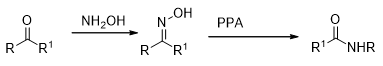 The hydrazone derivatives of ketones undergo a rearrangement to form N-substituted amides in the presence of acidic reagents like H2SO4, PCl5, BF3 etc. This is known as Beckmann rearrangement (Scheme 13).