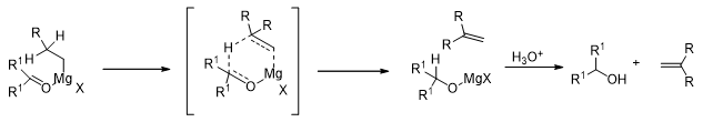 However, when there are hydrogen atoms on the β-carbon of the Grignard reagent, then they tend to reduce the carbonyl compound, they themselves being oxidized to alkenes.