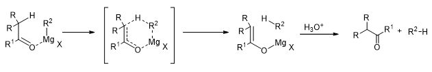 Similarly, sterically hindered ketones having hydrogen atoms on their α-carbons tend to be converted to enols, the Grignard reagent is reduced to form an alkane.
