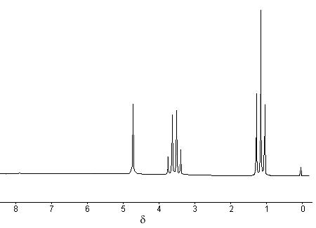 The proton NMR spectrum of ethanol is given below.