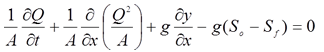 Q-Discharge through the channel A-Area of cross-section of flow y- Depth of flow S0-Channel bottom slope Sf- Friction slope