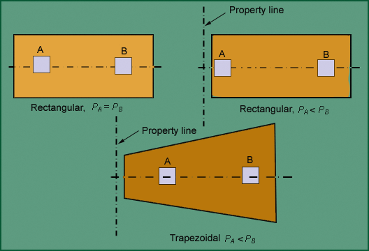It supports two columns as shown in fig. 4.4. It is used when the two columns are so close to each other that their individual footings would overlap. A combined footing is also provided when the property line is so close to one column that a spread footing would be eccentrically loaded when kept entirely within the property line. By combining it with that of an interior column, the load is evenly distributed. A combine footing may be rectangular or trapezoidal in plan. Trapezoidal footing is provided when the load on one of the columns is larger than the other column.