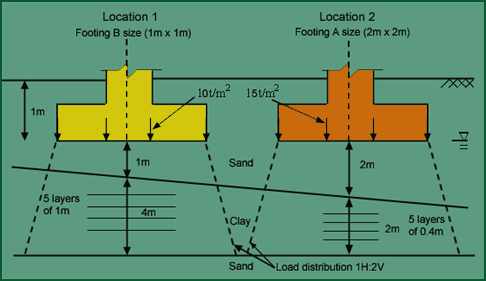 For each footing, considering different time (t) for consolidation the settlement is calculated using following equations: