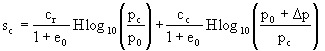 where is the compression index, is the recompression index, is the initial overburden pressure, is the increase in over burden pressure, pc is the pre-consolidation pressure and H is the thickness of the layer. |