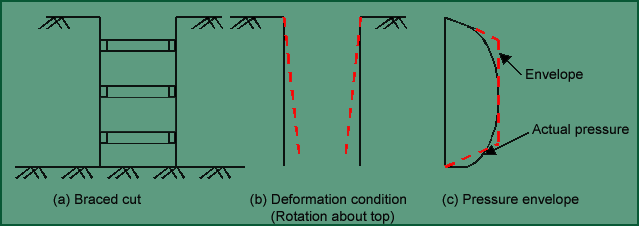 Deep excavations with vertical sides require lateral supports to prevent cave in of the earth and to protect the adjacent areas against ground subsidence and lateral movement of the subsoil. When excavations are shallow and ample space is available, the sides of the excavation can be sloped at a safe angle to ensure stability. However, in deep excavation, especially in built up areas there may not be adequate space for providing safe slopes. Moreover it becomes uneconomical to provide safe slope because of large quantities of earth involved. |
