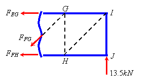 (b) Take a section through EG , FG , FH and consider the equilibrium of part at the right side