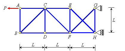 Example 2.2 Find the forces in all members in the Figure E2.2.