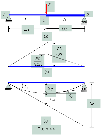Solution: The M/EI diagram of the beam is shown in Figure 4.4(b).