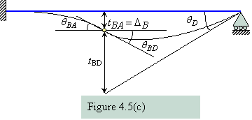 Since the end A is fixed, therefore, . Applying the first moment-area theorem between points A and B (refer Figure 4.5(c))