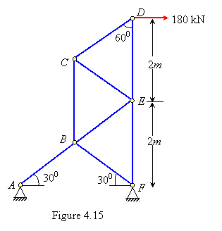 Example 4.10 For the pin-jointed structure shown in the Figure 4.15, find the horizontal and vertical displacement of the joint D . The area of cross-section, A =500