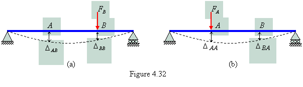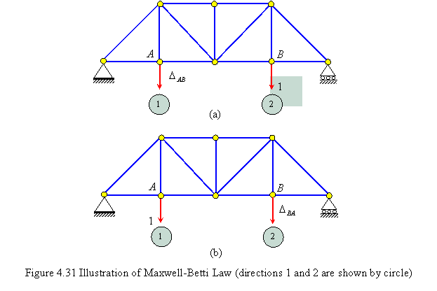The Figure 4.31 explains the Maxwell-Betti Law of reciprocal displacements in which, the displacement