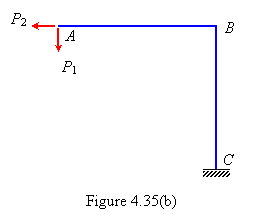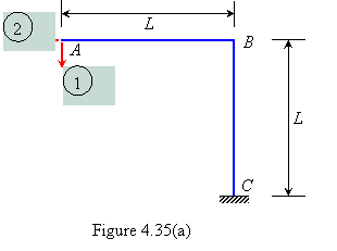 Example 4.23 Verify Maxwell-Betti law of reciprocal displacement for the rigid-jointed plane frame with reference to marked direction as shown in Figure 4.35(a). EI is same for both members. |
