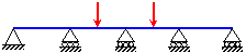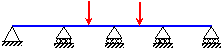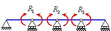 The another structure under consideration is a four-span continuous beam as shown in Figure 5.9. The degree of static indeterminacy of the beam is 3. Two basic determinate structures are illustrated. On the left-hand side of the figure, the basic determinate structure is formed by releasing moment in the beam at the three interior supports. On the right-hand side of the figure, the basic determinate structure is formed by releasing the vertical reaction at the three interior supports.