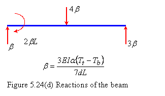 The reactions of the beam are shown in Figure 5.24(d).