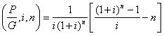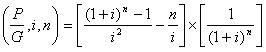 The present worth factor of a uniform gradient series (i.e. arithmetic gradient series) with values in multiples of gradient amount ‘G' can be obtained by multiplying the uniform gradient future worth factor (UGFWF) with the single payment present worth factor (SPPWF) and the functional representation is given as follows