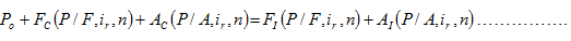 On left hand side of the above equation, Po is the initial cost at time zero and FC (single amount) and AC (uniform amount series) are the expenditures occurring at future period of time. Similarly on the right hand side of the equation, FI (single amount) and AI (uniform amount series) are the incomes or revenues occurring at future period of time. The value of interest period ‘n’ will vary depending upon the occurrence of the future amounts (either expenditure or income).