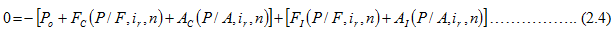 Now putting the expressions for present worth of cash outflows and that of cash inflows in equation (2.1) results in the following expression;