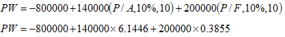 The net present worth of the construction equipment at MARR i.e. 10% is given by;