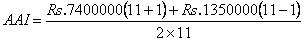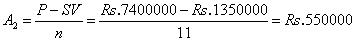 Salvage value (SV) = Rs.1350000, Useful life (n) = 11 years