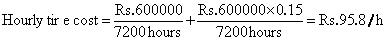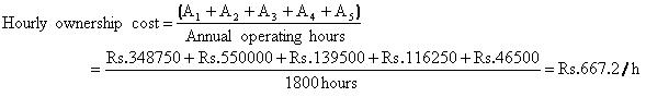 Thus for the construction equipment, the hourly ownership cost is Rs.667.2/h and the hourly tire cost (by not considering time value of money) is Rs.95.8/h.