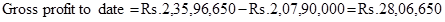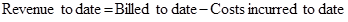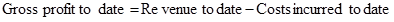 Now gross profit to date is calculated by subtracting costs incurred to date from revenue to date and is given by;