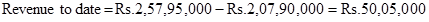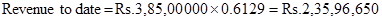 The revenue to date for the project is now calculated by multiplying the contract amount with the percentage of completion and is given by;