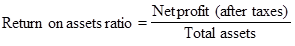The return on assets ratio is calculated by dividing the net profit after taxes by the total assets of the company. This ratio is expressed as a percentage and is given by: