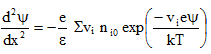 Eq. 2.7 represents differential equation for the electrical double layer adjacent to a planar surface. This equation is valid for constant surface charge. Solution of this differential equation is useful for computation of electrical potential and ion concentration as a function of distance from the surface.
