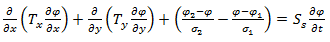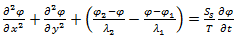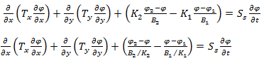 This is the flow equation for anisotropic non-homogeneous leaky confined aquifer for unsteady condition.