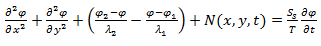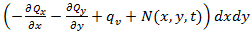 Let N(x,y,t) is the source or sink of the control volume per unit area.