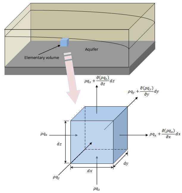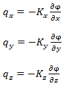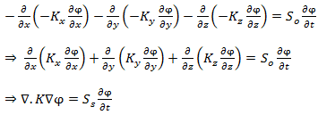 Now, as per Darcy’s law qx, qy and qz can be written as