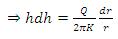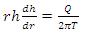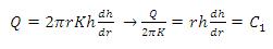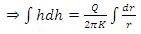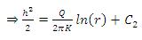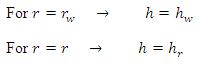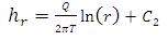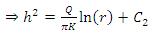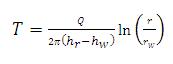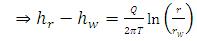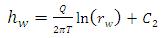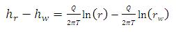 Knowing hydraulic head at the well, the equation (16.13) can be used to calculate steady state hydraulic head for any values of r. This equation can also be used for estimation of aquifer transmissivity. For calculating aquifer transmissivity, the equation can be written as,