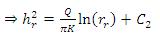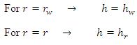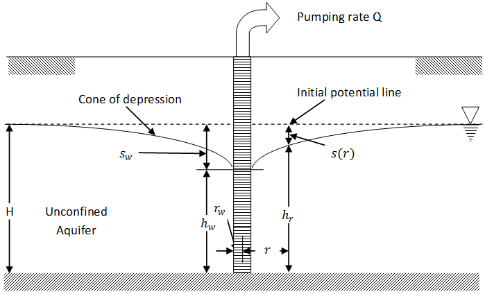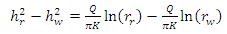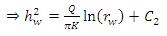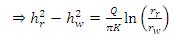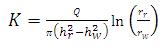 Knowing hydraulic head at the well, the equation (16.29) can be used to calculate steady hydraulic head for any values of r. This equation can also be used for estimation of aquifer conductivity . The equation can be written for calculating aquifer conductivity as,