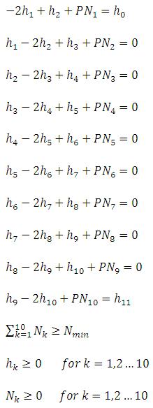 The constraint (23.16) ensures that the minimum withdrawn is Nmin and the constraints (23.17) and (23.18) are the non negativity constraints. Here the decision variables are N1 to N10 and h1 to h10 are the state variables. If we look at the optimization problem, the objective function and the constraints are linear in nature. As such the problem is a linear problem (LP) and can be solved using any LP solving algorithm like Simplex method. We will not discuss about any optimization algorithms here. However, students are requested to go through the NPTEL course developed by Prof. Nagesh Kumar on “Optimization Method” for details about the optimization algorithms.