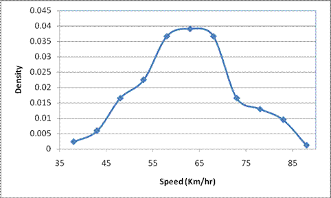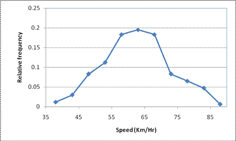Figure 2.3: Relative frequency polygon of speed data of cars