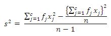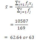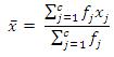 If the data is grouped into c different classes and fj is the frequency of the data in the jth class, and xj is the midpoint of the class then the mean is computed as follows;