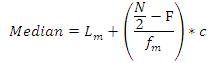 Where, Lm is the lower limit of the median class, c is the class width, and N is the total frequency.