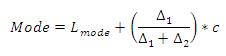 Where, Lmode is the lower limit of the modal class, Δ1 is the frequency difference between the modal class and the next class, Δ2 is the frequency difference between the modal class and the class before the modal class.