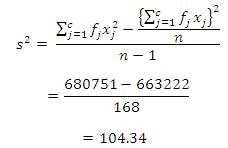 For the speed data given in Table 2.1 the mean and the standard deviation can be found by dividing the data into several classes of equal length. The calculations are shown in Table 2.4.